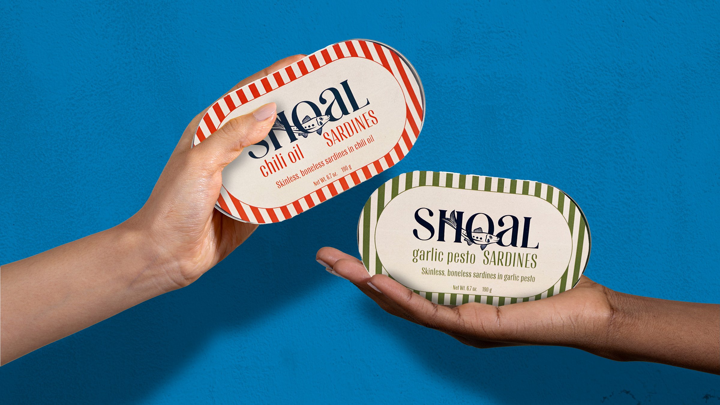 Inspired by the Italian island, Sardinia, Shoal sardines brings a fresh and flavorful approach to the notoriously fishy food. Shoal inspires people to gather around and share in the creative (and delicious) ways to cook with sardines. Rooted in sustainability, Shoal is made with eco-friendly and recyclable packaging. This brand was created with a team in 24 hours, as a part of the Sleep When You’re Dead annual design competition.